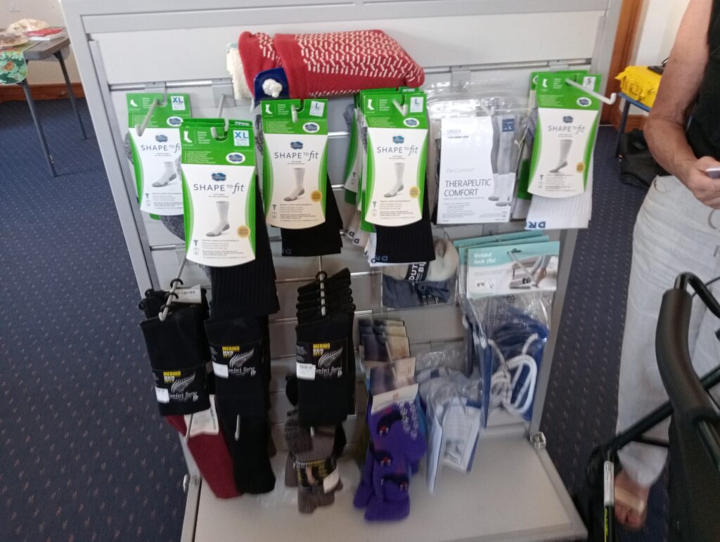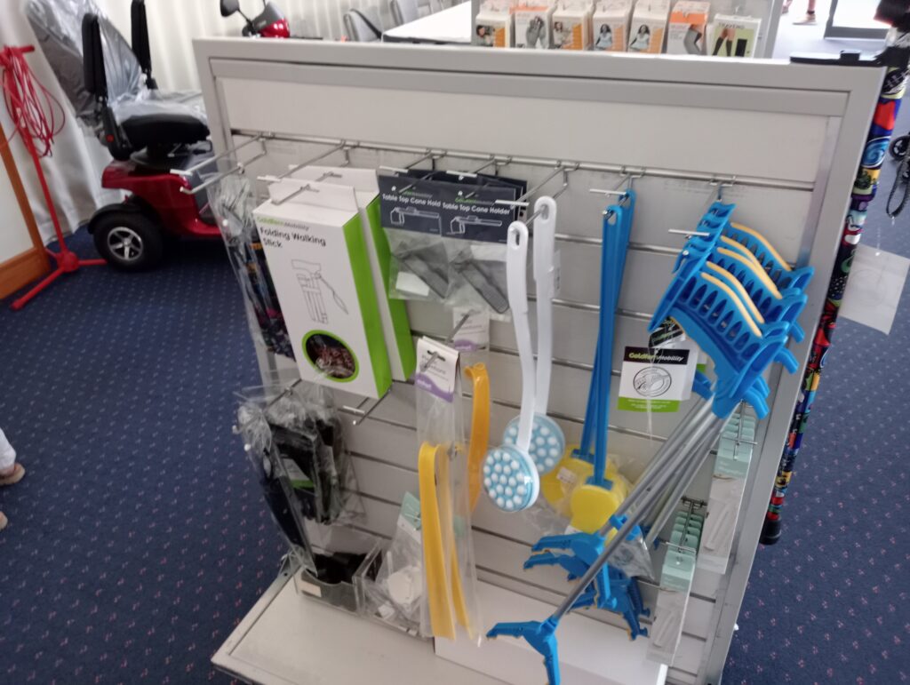 Santa failed to get off the cruise ship in port in Napier in time to visit the meeting but the meeting was fun and interesting without him. Leslie Harrison from Easie Living brought many aids and implements to assist our members plus she spoke about ACC and medical access to aids and equipment. Leslie told us that there is a problem with funds (ACC especially) for the equipment needed just to meet the number of falls that happen each year. in New Zealand. Take a look at the wonderful range of aids and assists